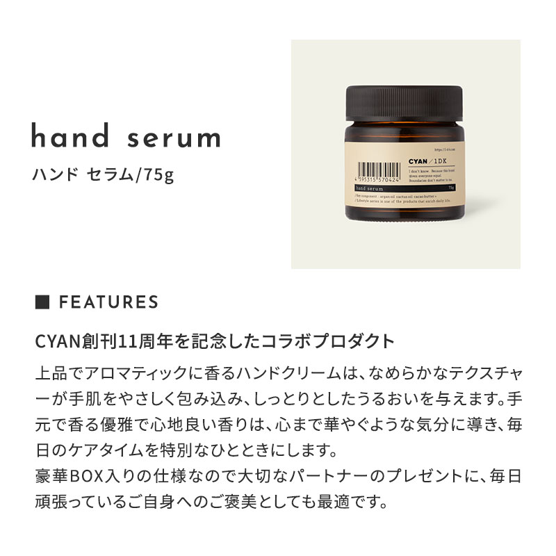 上品でアロマティックに香るハンドクリームは、なめらかなテクスチャーが手肌をやさしく包み込み、しっとりとしたうるおいを与えます。