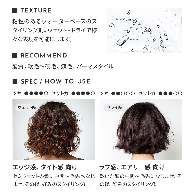 ウェット・ドライで様々な表現を可能にします。
