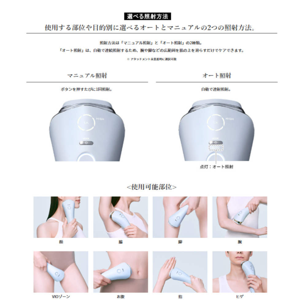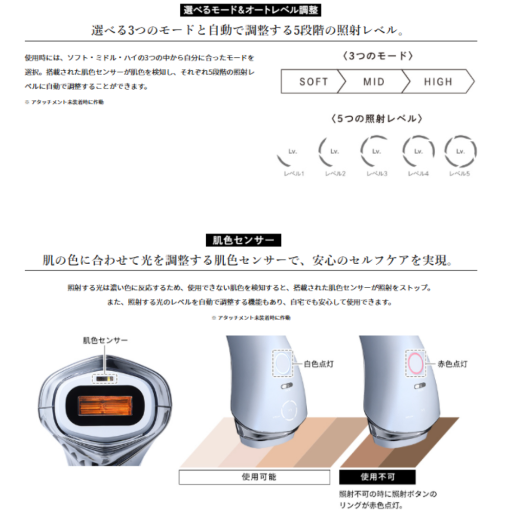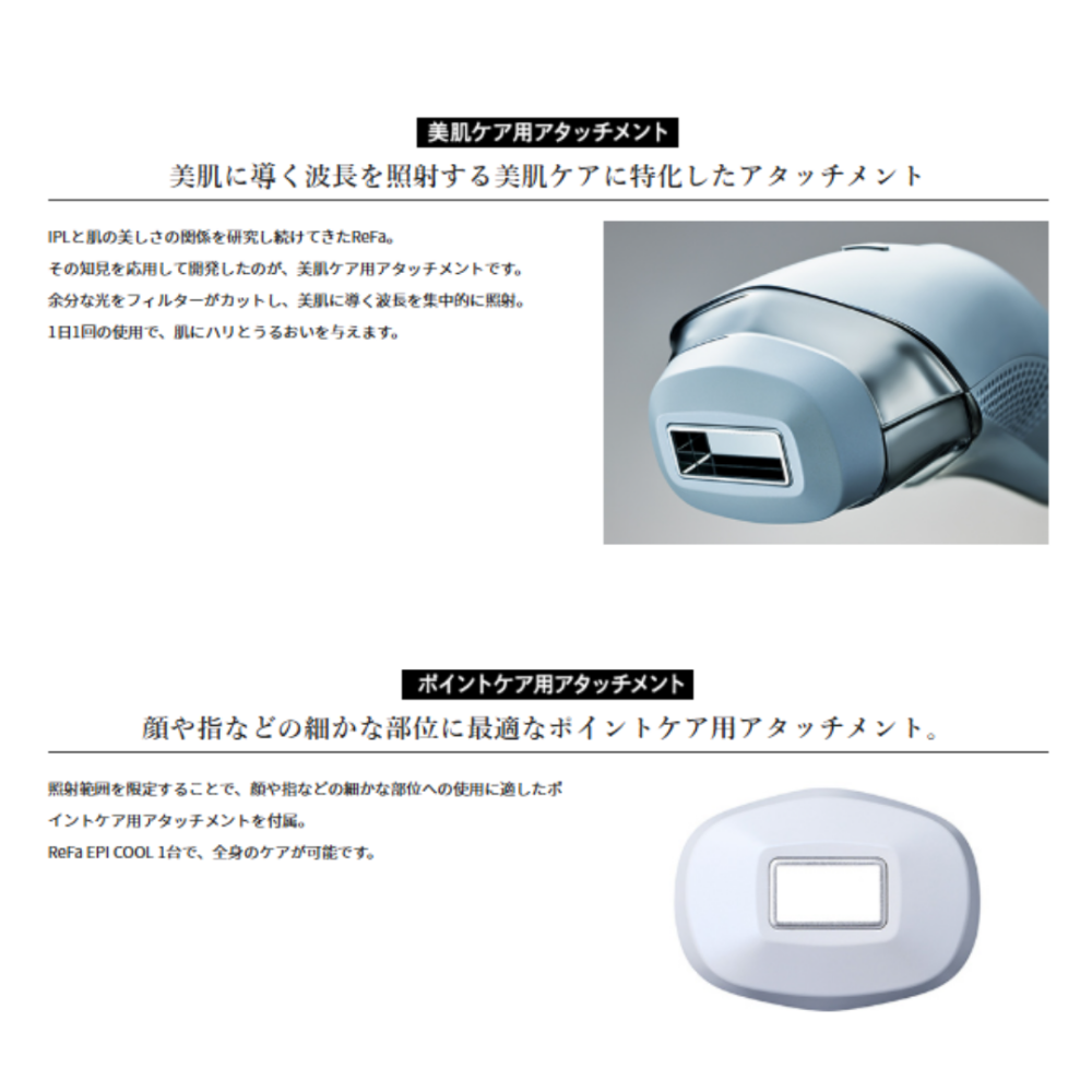 専用アタッチメントを装着するだけで、余分な光がカットされ、美肌に特化した波長を集中照射。