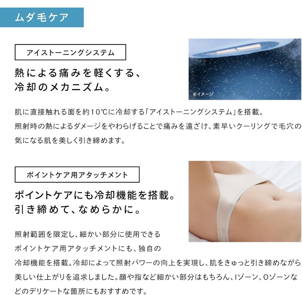 さらに、独自の冷却機能「アイストーニングシステム」で肌を約10℃に冷却。