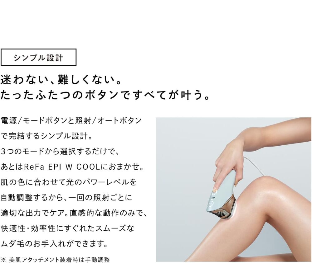 操作は2つのボタンだけ。3つのモードを選ぶだけで、自動で肌に合わせた出力に調整。