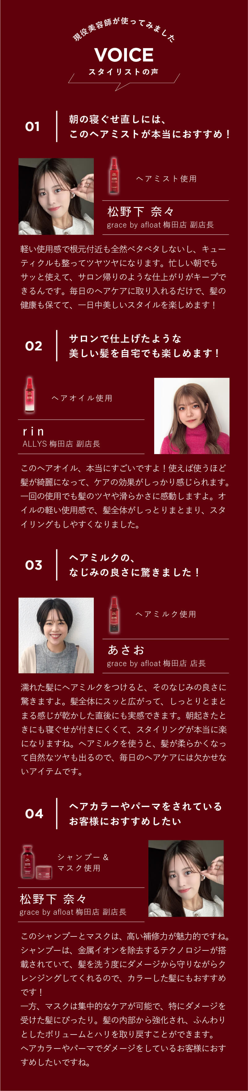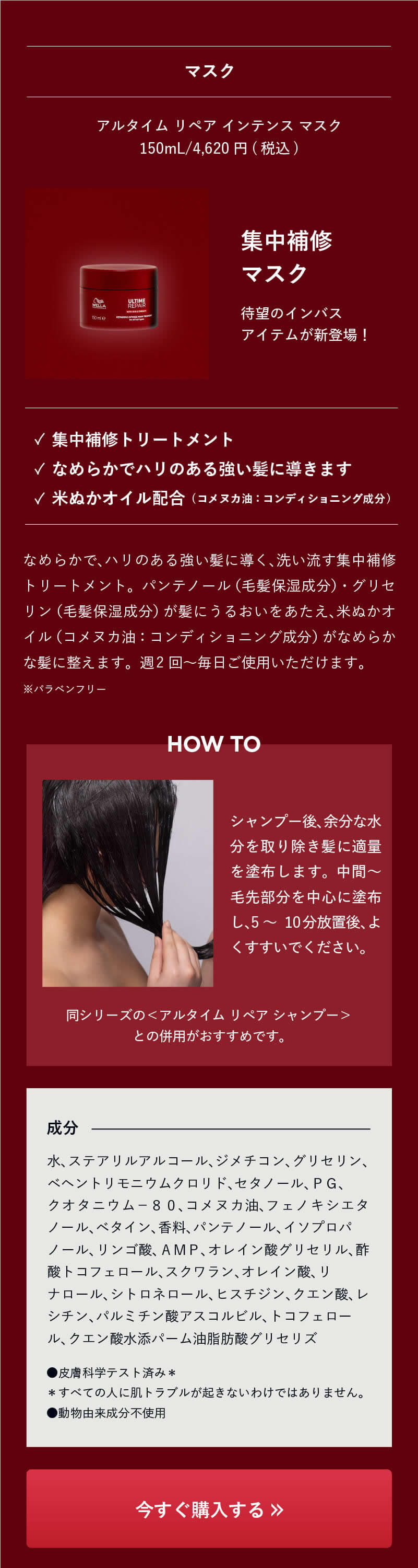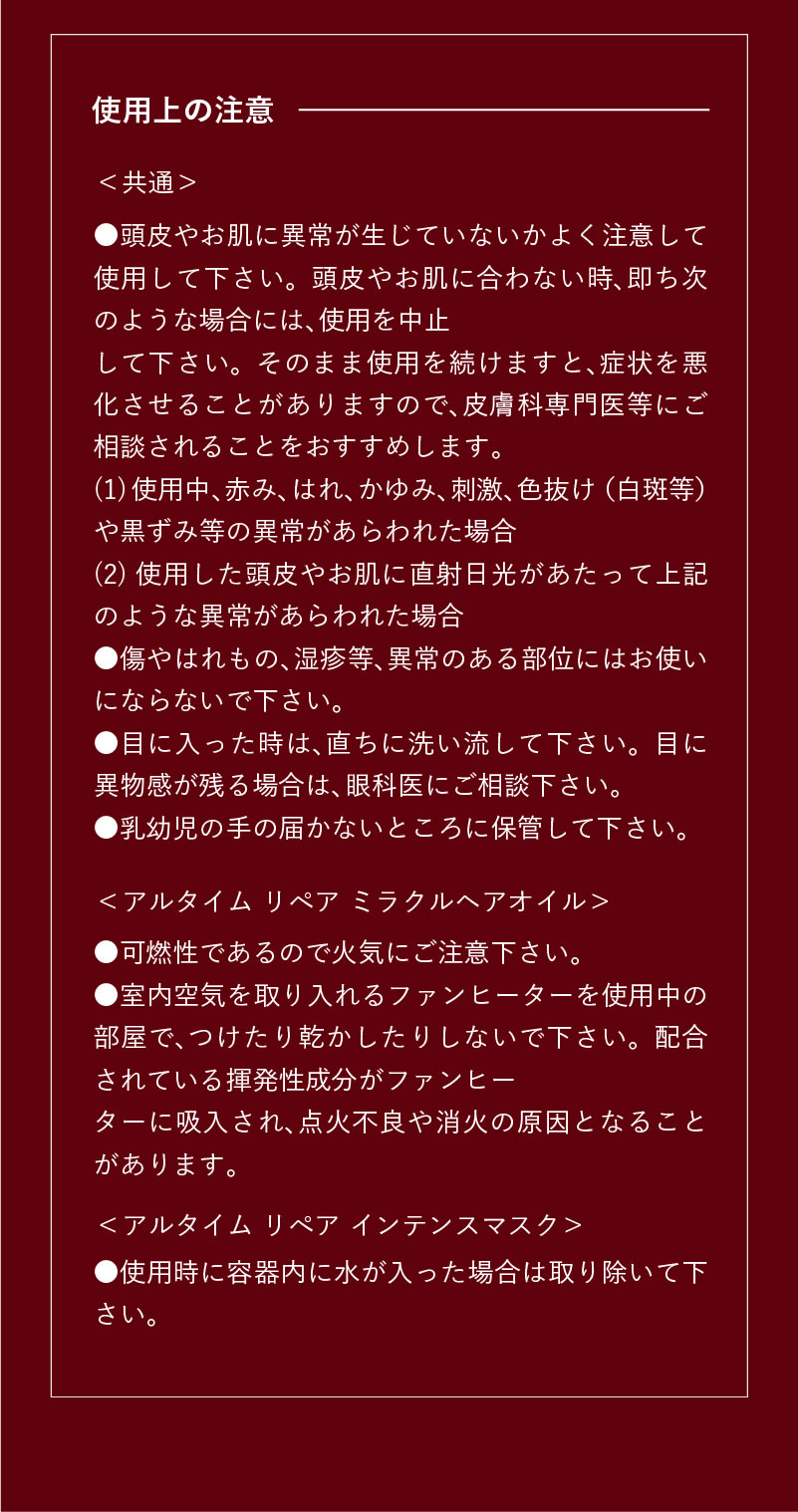 さらに、アルタイムリペアのオイルやミルクを重ねてもお使いいただけます。