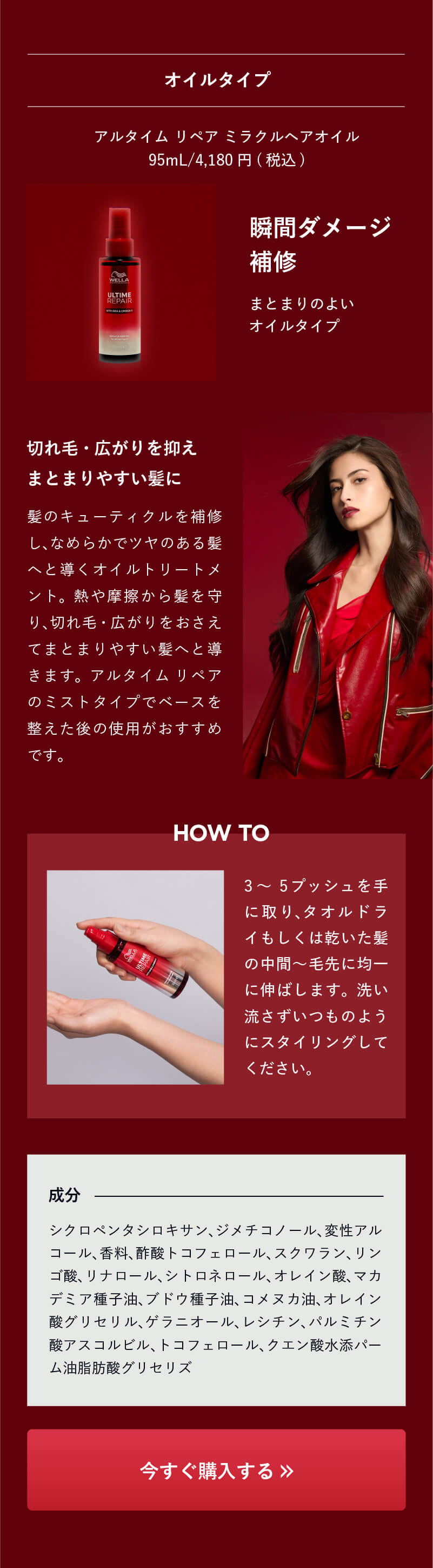 瞬間ダメージ補修、まとまりのよいオイルタイプ。